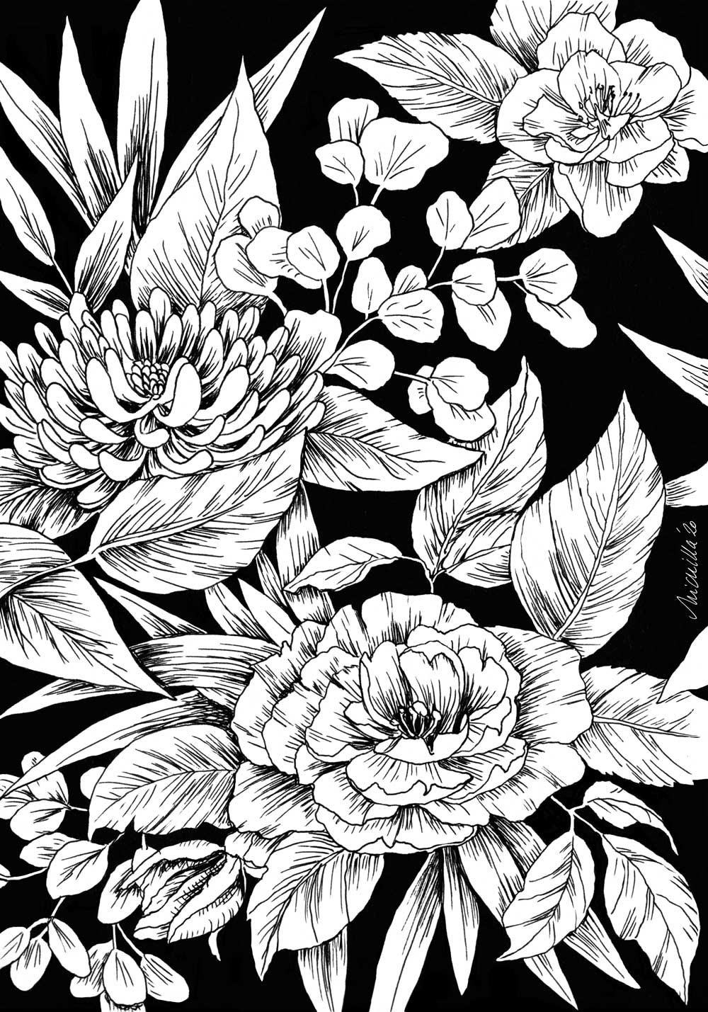A beautiful lush floral pattern with bohemian vibes. Inspired by magnificent wild Cornish gardens, overflowing with the most luxurious and rich blooming peonies. Where warm summer days are filled with the intoxicating smell of wild roses and later on, Autumn is taking your breath away with the most dazzling chrysanthemums.